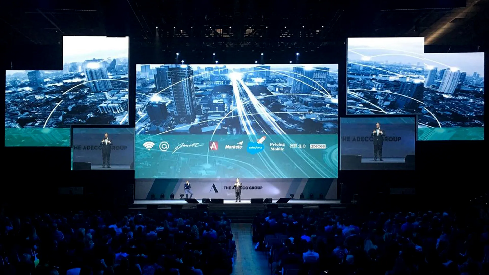 Scenografie impattanti richiedono altissime risoluzioni pochi picture in picture e animazioni full size. sono la nostra specialità. Negli anni abbiamo creato un workflow che permette cambiamenti e sistemazioni in poche ore. Non ci piace aprire finestra in Picture in Picture perché la grandiosità deve essere rispettata. Schermi giganti usati bene.