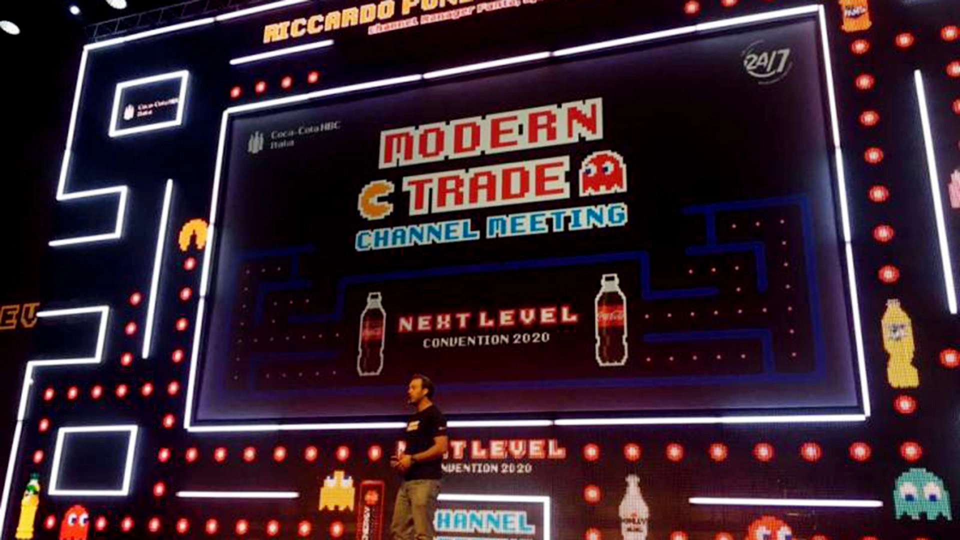 Fluxx ha realizzato i contenuti delle evento e le slide in stile 8 bit in motion graphics  per la Convention NEXT LEVEL di CocaCola, che si è svolta al Palacongressi di Rimini.